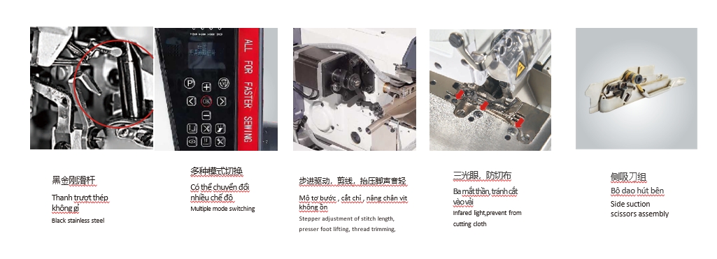 Máy vắt sổ mô tơ bước cho vải dày mỏng hiệu suất cao.